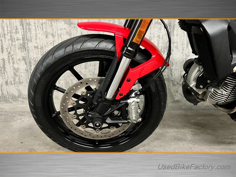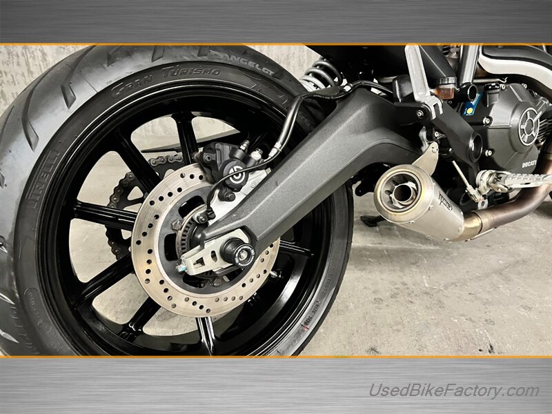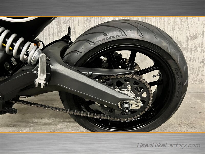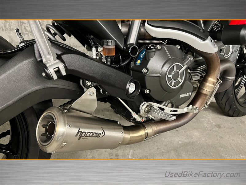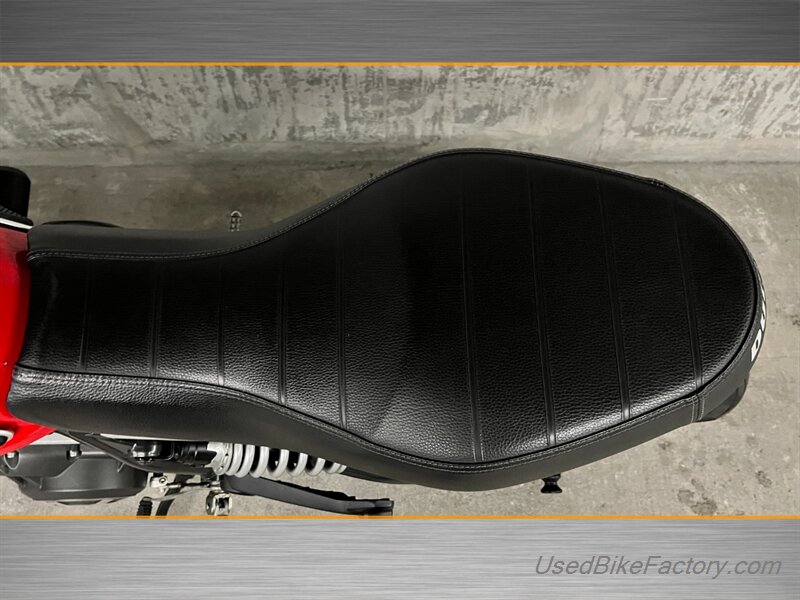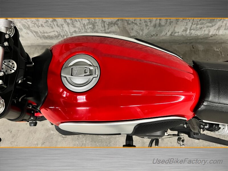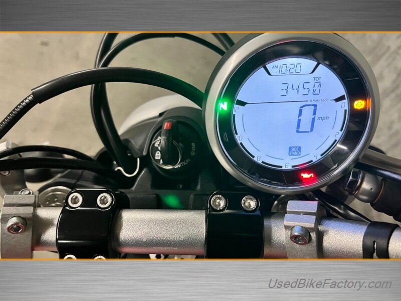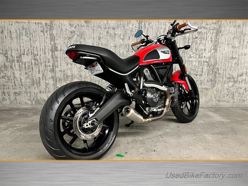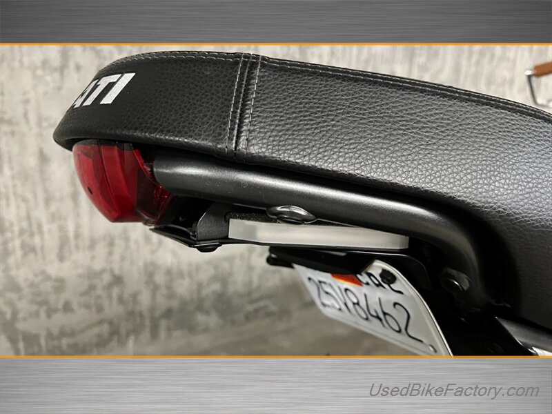 Factory highlights include electronic fuel injection, a steel trellis frame, sporty front and rear suspension, front and rear disc brakes with ABS, a classic round headlight with LED daytime running light, and a clean analog-plus-digital instrument cluster. The minimalist flat seat, lightweight alloy wheels, and distinctive Scrambler styling complete the look.